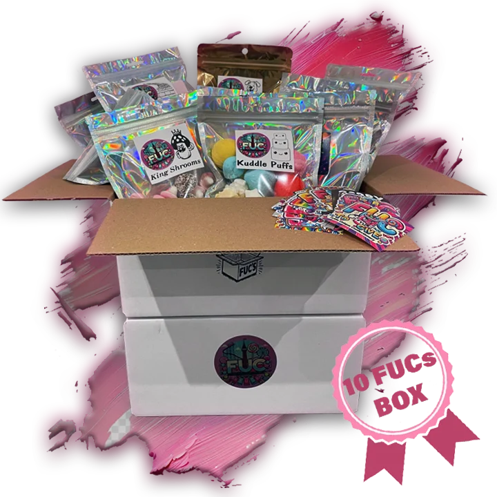 10 full-throttle bags of flavour mischief with 10 "Fucs to give" and 1 "sorry I'm out of Fucs to give" stickers.