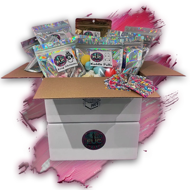 10 full-throttle bags of flavour mischief with 10 "Fucs to give" and 1 "sorry I'm out of Fucs to give" stickers.