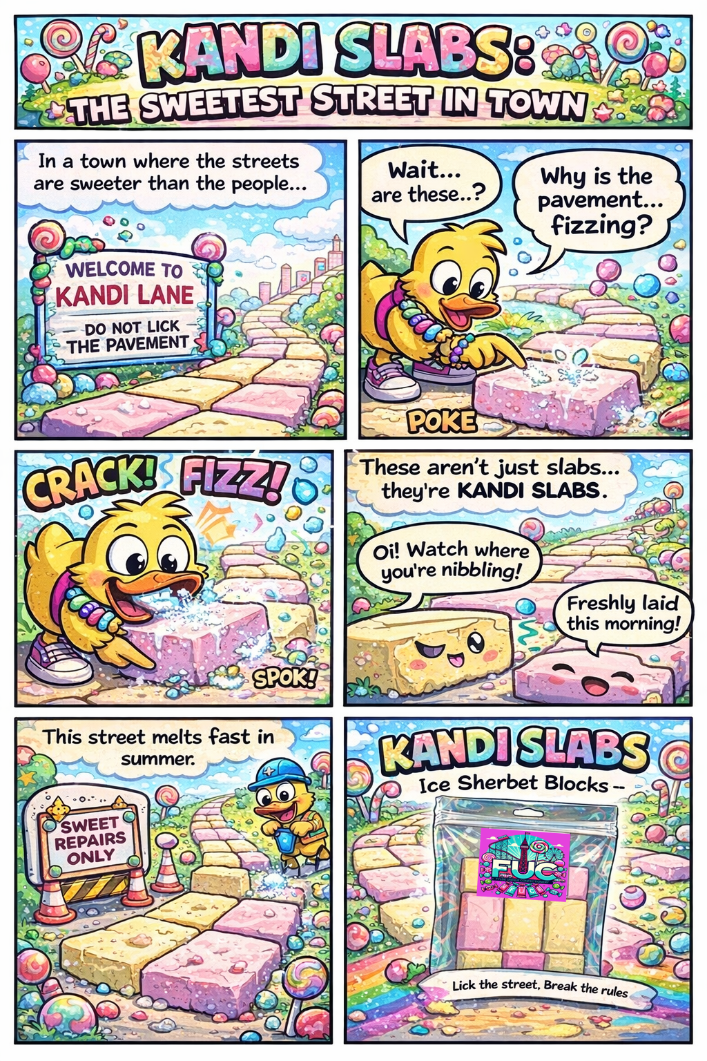 Flat, fierce, and full of FUC. These slabs don’t melt — they slap. You don’t nibble a Kandi Slab. You commit.