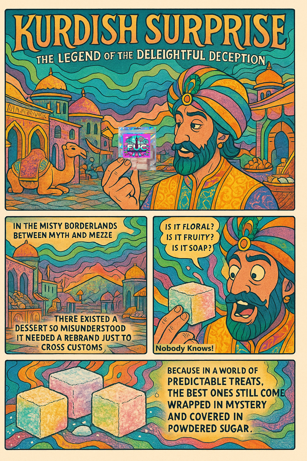 A sweet, squishy adventure in every bite! Assorted Turkish delights bursting with flavours you’ll love to guess and savour. Take a chance and let the surprises unfold – it’s the sweetest mystery you’ll ever solve.